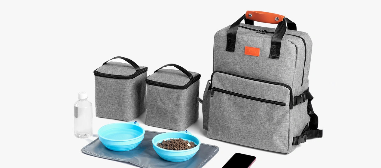 The Delomo Duke comes with essential accessories such as insulated food containers, collapsible bowls, and a waterproof feeding mat.