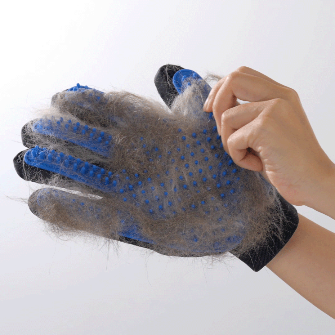 Groom dogs, cats, and horses with Delomo Zoe pet grooming gloves. 255 soft silicone tips feel like gentle petting while removing loose fur.